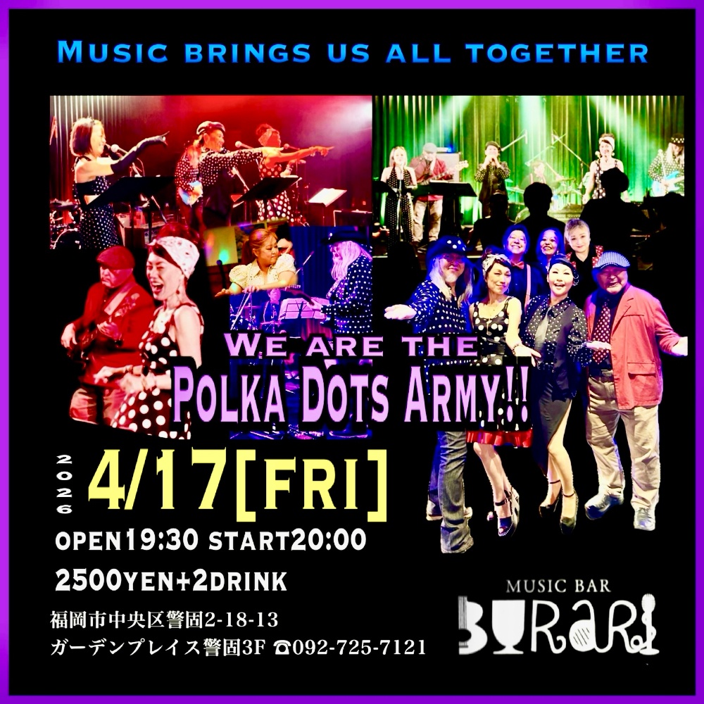 | 4月17日 金曜日 | ポルカドットアーミー open19:00 start19:30 2500yen +2drink |