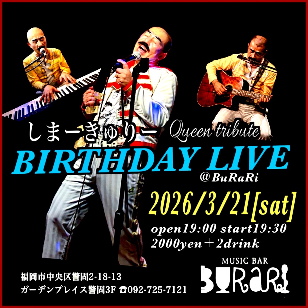 | 3月21日 土曜日 | しまーきゅりー バースデーライブ open19:00 start19:30 2000yen+2drink |