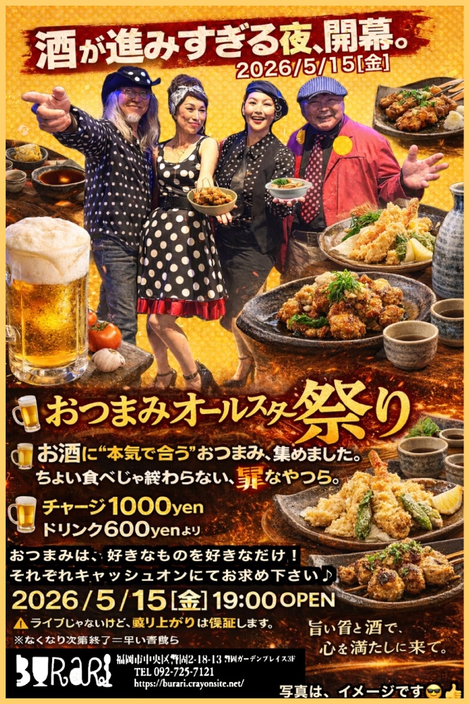 | 5月15日 金曜日 | おつまみオールスター祭り |
